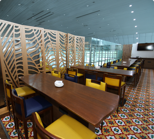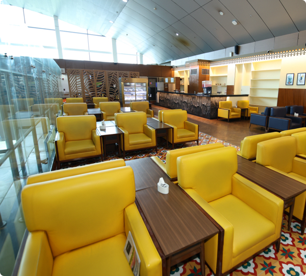 The Lounge for business class, card holder, and walk-in customers offers food and other services.
